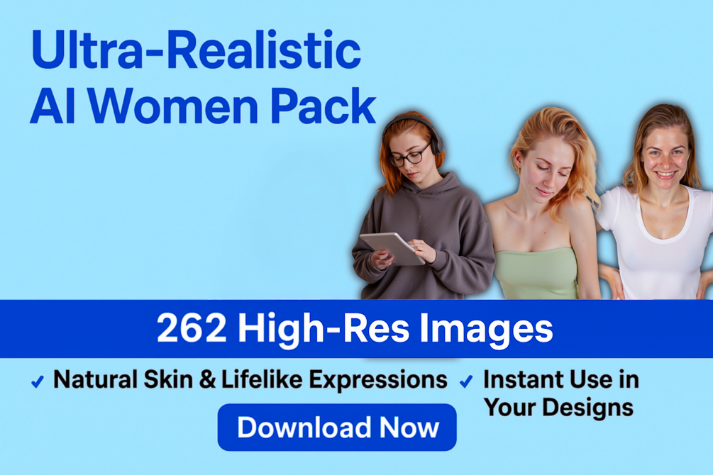 The Ultra-Realistic AI Women Pack is a curated bundle of 262 high-quality PNG images of artificial intelligence–generated women that stand out for their natural skin textures, human-like expressions, and versatile commercial usability.